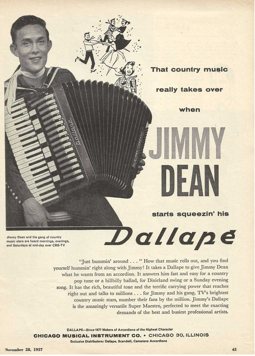 Down at old Macaques a hog-killin' time is to be had on Grand Ol' Thursdeee Country night when guest Texan longshore man, buffalo wrestler and recently out of the closet Jimmy Dean starts squeezing' his Dallapé. His newly married partner Zeke Slivovitch will accompany on Jewish Harp and timpani.